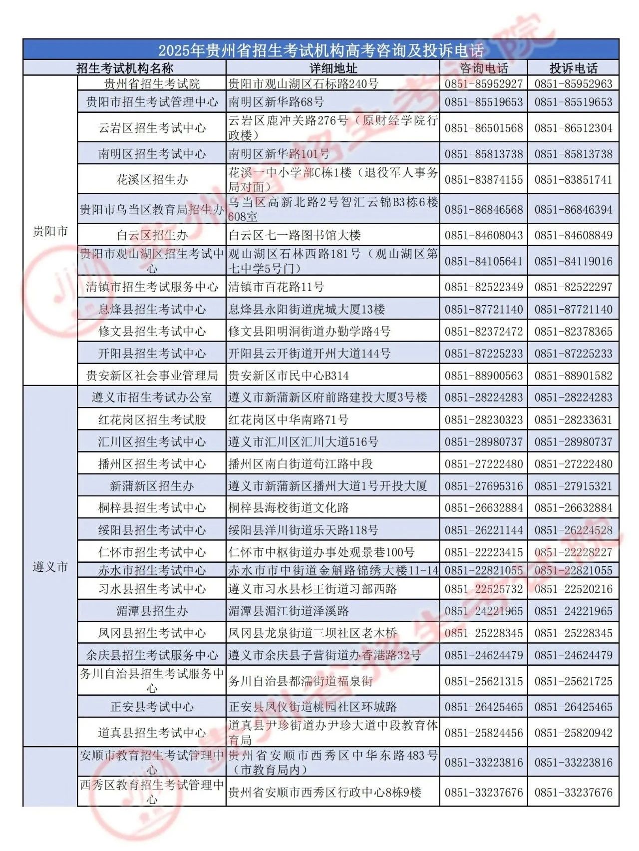 1.贵州省招生考试院咨询电话:0851-85952927;投诉电话:0851-85952963。