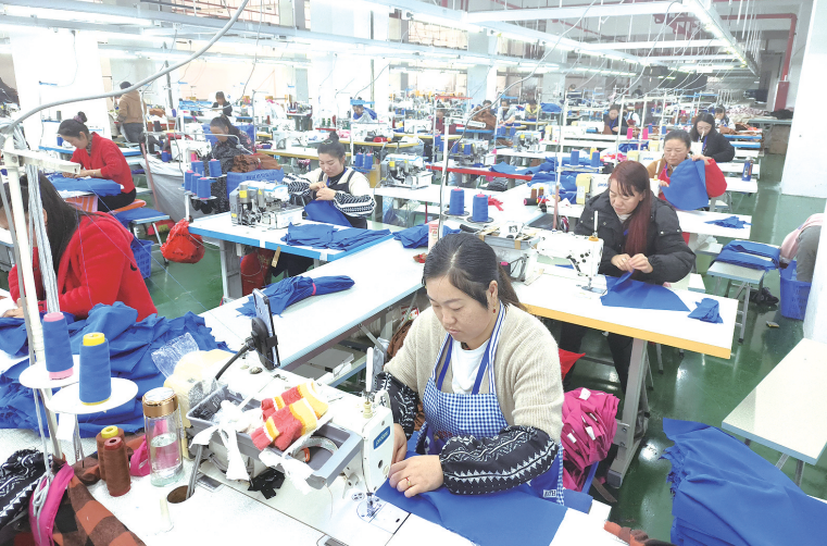 冬日早晨,阳光爬出云层,照射在地处云贵高原六盘水市水城区新桥街道。张巧巧换上厚外套,走下楼梯,穿过新业社区易地搬迁安置点,约5分钟便来到贵州思博服饰有限公司(以下简称“思博服饰”),开始一天的工作。与她一起在思博服饰流水线上工作的员工有96人,其中61人是来自新桥街道新业社区的易地扶贫搬迁户。在“粤黔协作”的时代浪潮中,他们不仅完成了从农民到产业工人的华丽转身,也实现了家门口上班的心愿。