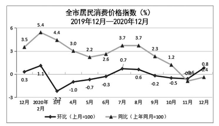 12月份,居民消费价格总指数99.6%;1—12月居民消费价格总指数102.6%,商品价格零售总指数102.7%,服务价格指数99.4%。